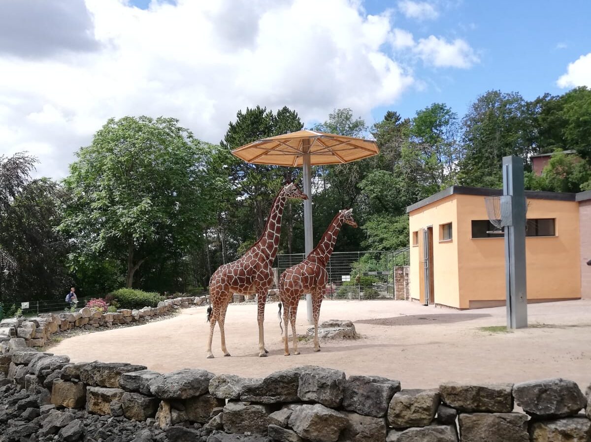Am heutigen Geburtstag des Juniors ging es nach Erfurt. Zuerst besuchten wir den Thüringer Zoopark im Norden der Stadt. Der Park beschreibt sich selbst als „Zoo der großen Tiere“ und schon am Eingang wird klar, warum. Im Raubtierhaus tummelt sich neben Tüpfelhyänen auch eine kleine Gruppe Löwen. Weiter geht es im Rundweg vorbei an Nashörnern, Giraffen und auch Afrikanischen Elefanten. Aber auch Bisons und Kängurus sowie kleine Kaninchen und allerhand andere kleinere und größere Tiere aller Kontinente kann man in dem naturnah angelegten Park entdecken.