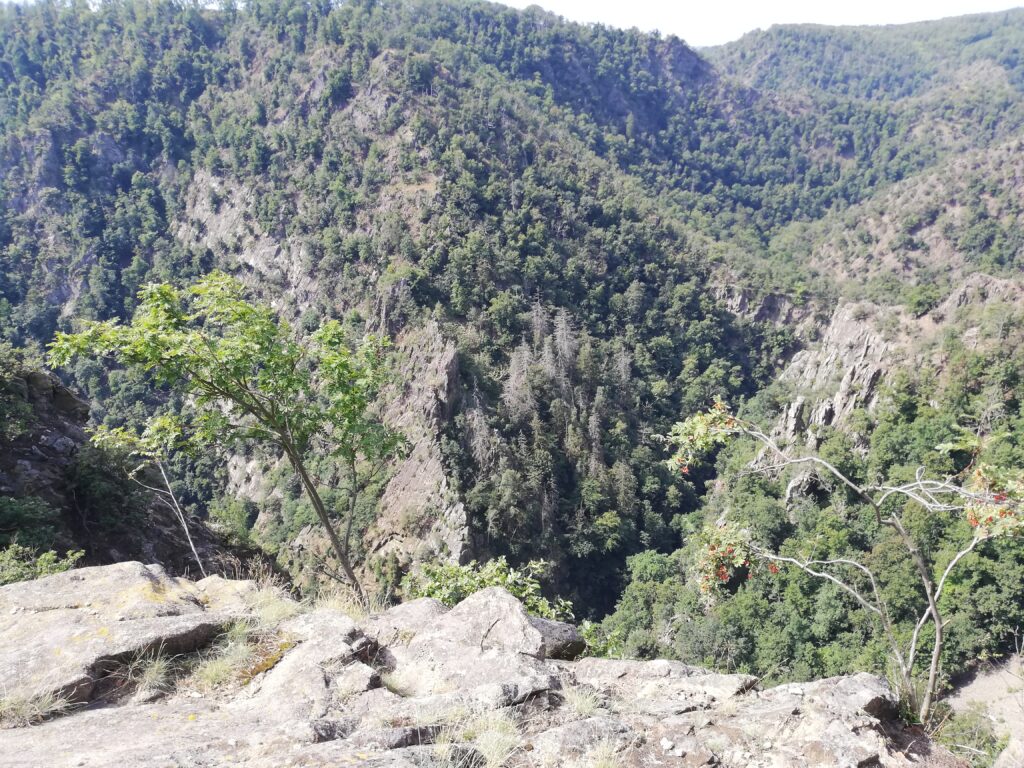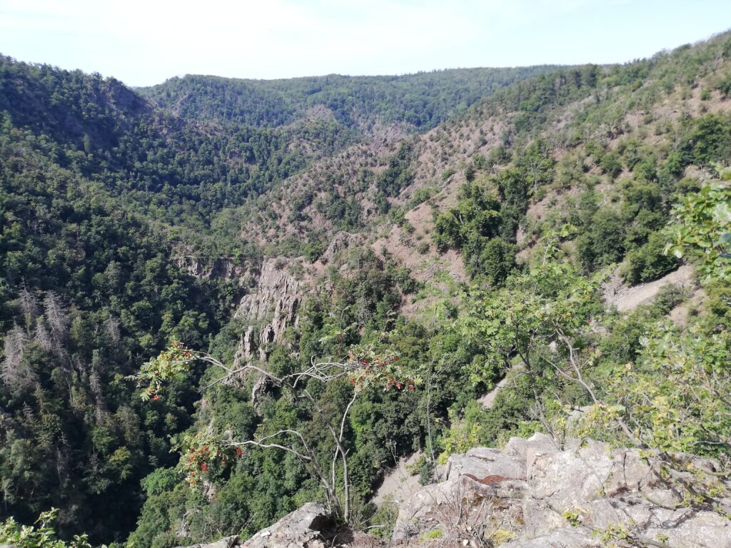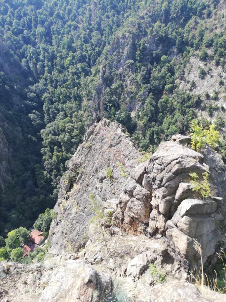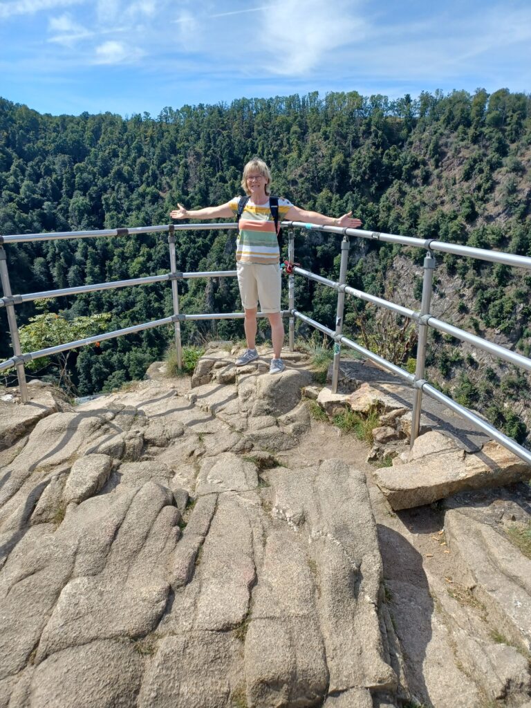 Oben angekommen, hatten wir einen herrlichen Blick über das Tal und auf den gegenüberliegenden Hexentanzplatz. Unten floß rauschend die Bode. Welch ein Hochgenuss. Wieder mussten wir an unsere beiden „Extremsportler“ oder Wanderer und Kletterer denken, die in Österreich oder Italien ähnliche Aussichtspunkte erklimmen und herrliche Fotos an die Familie senden. Naja, ich fahre ja bloß nicht dahin, weil mein Handy schon fast Rentner ist und solch tolle Aufnahmen nicht mehr schafft. 😒 Sonst……😉 🤣