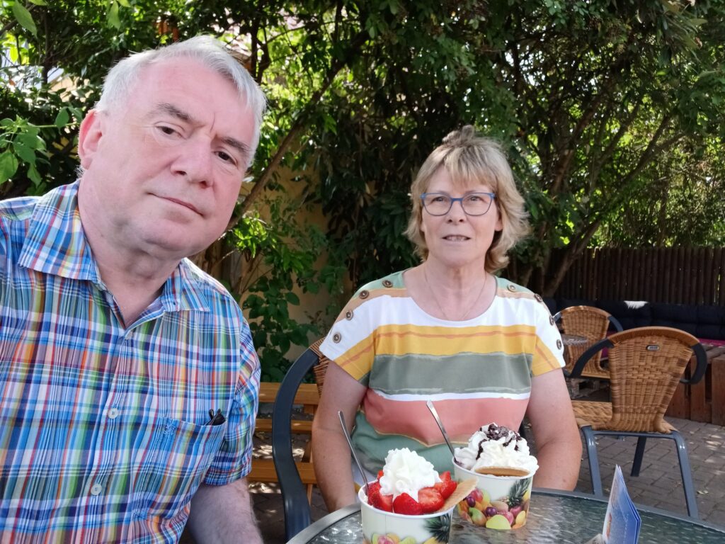 Nur Menschen gab es kaum. Aber ein Eiscafé, in dem wir uns erstmal einen Eisbecher schmecken lassen mussten.
