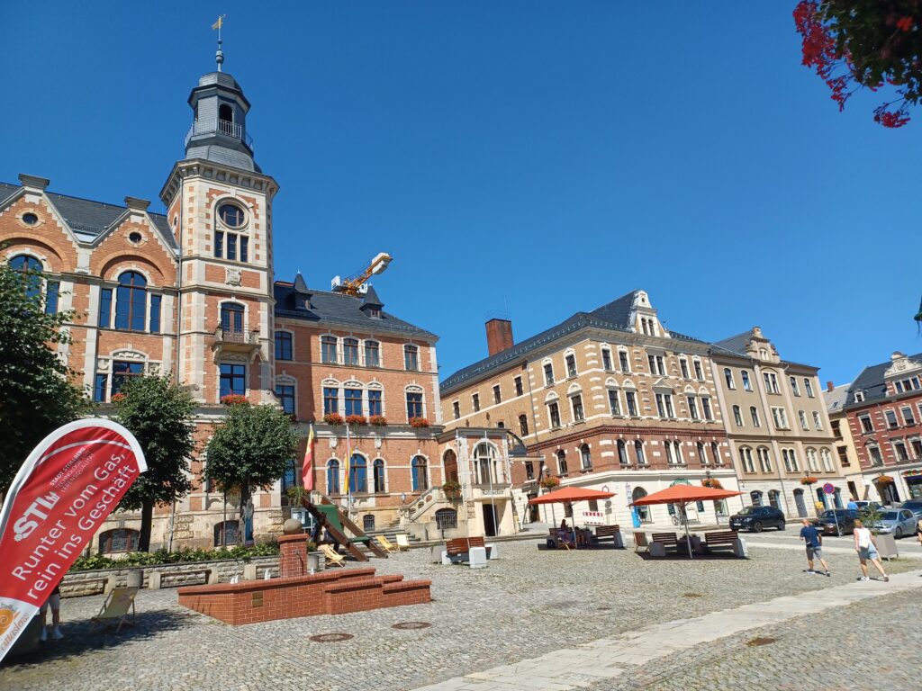 Nach dem Frühstück im Freien lautete dann der Plan: Besuch der Stadt Stollberg, danach ein Abstecher zum Wasserschloss Klaffenbach und zu guter Letzt Chemnitz, die Kulturhauptstadt 2025. Wobei wir uns heute aus besagten Gründen nur auf das Zentrum der Stadt beschränkten.