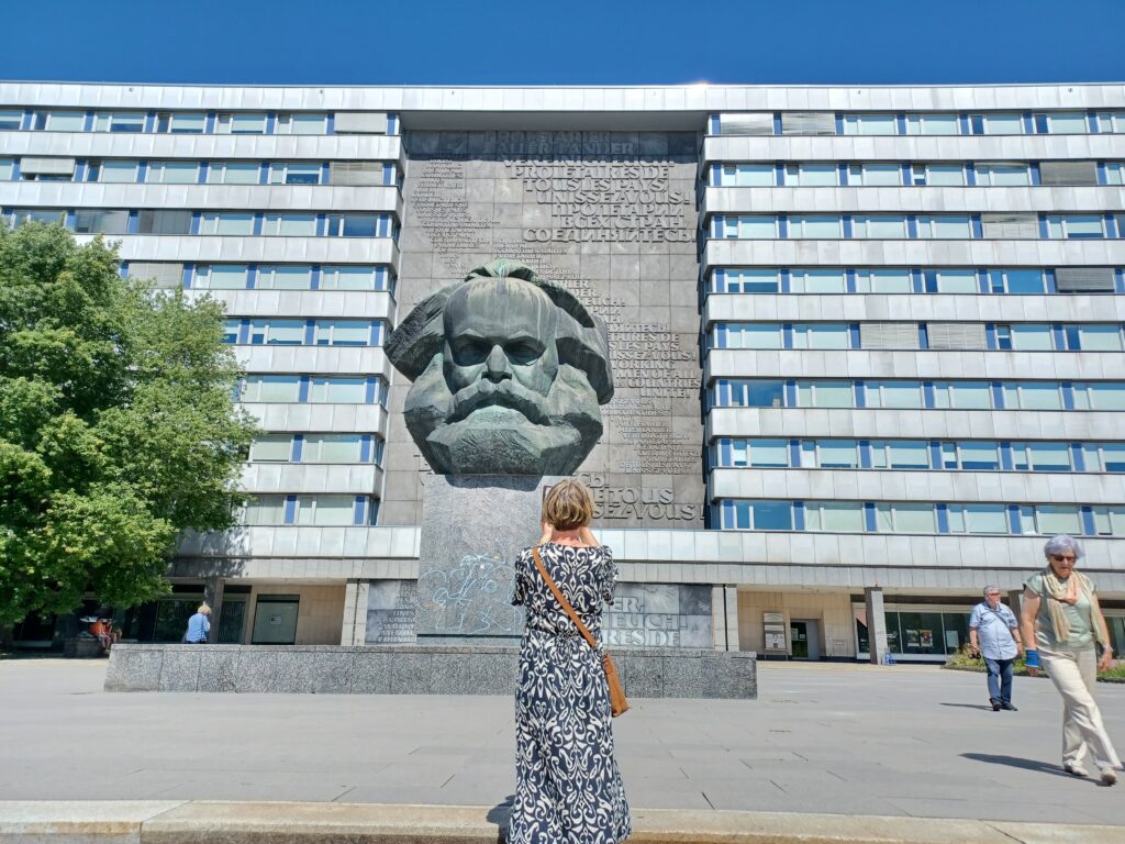Zum Tagesfinale fuhren wir dann nach Chemnitz. Die Parkplatzsuche war zum Glück entspannt und so konnten wir Karl-Marx-Monument, Stadthalle und Rathaus-Ensemble fussläufig besuchen, wobei letzteres kaum zu sehen war, da in der Innenstadt ein Weinfest stattfand.