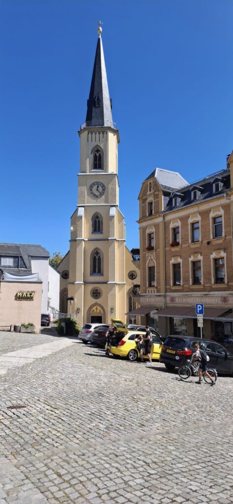 Zunächst schauten wir in der Großen Kreisstadt Stollberg vorbei. Ein netter Marktplatz und die Kirche St. Nikolai sind die Sehenswürdigkeiten der Stadt.