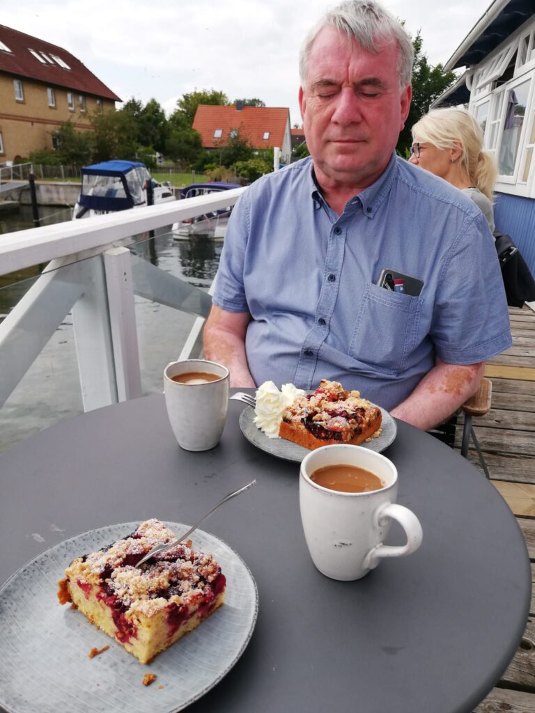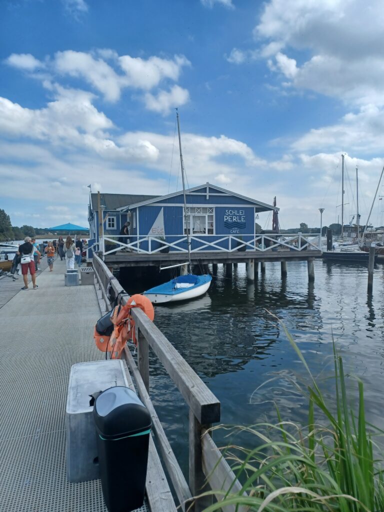 Mit nur 264 Einwohnern und einer Fläche von 0,45 Quadratkilometern ist sie die kleinste Stadt Deutschlands (wohl auch der ganzen Welt). Sie wird von den Einwohnern „Perle der Schlei“ genannt. Deshalb kehrten wir auch zum Kaffee in die „Schleiperle“ direkt am Wasser ein.