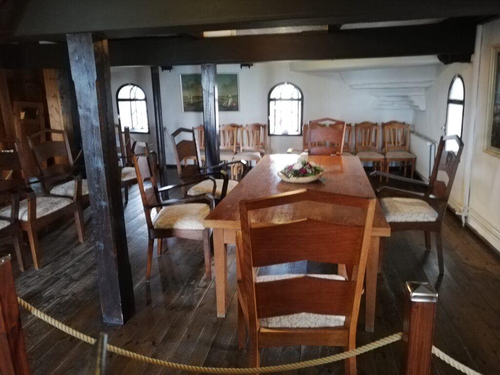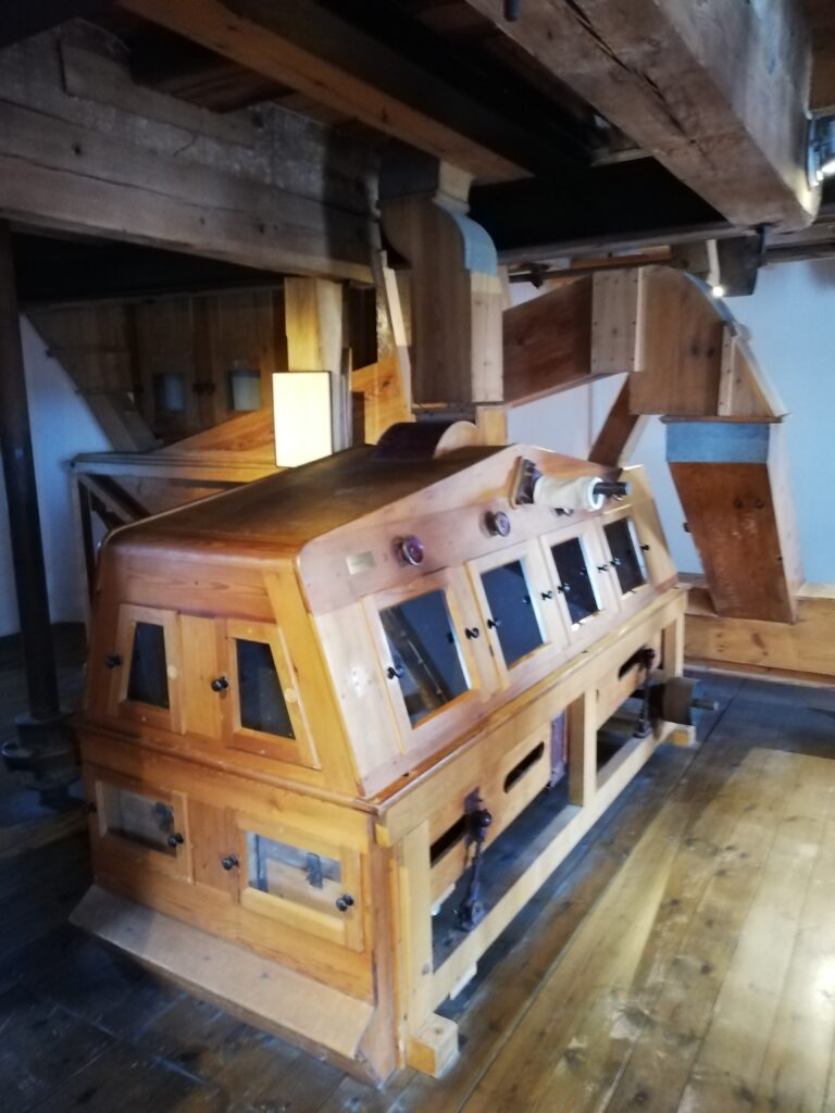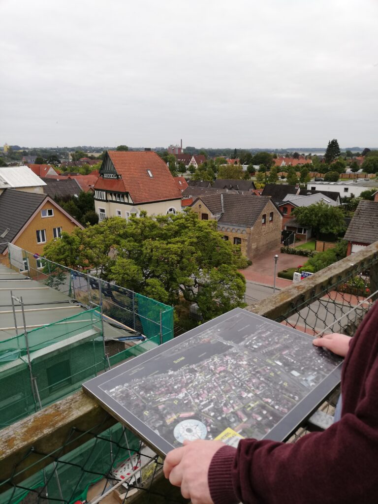 Unser erstes Ziel war die Mühle Amanda, die höchste Windmühle Schleswig-Holsteins mit angeschlossenem Sägewerk. Viel Zeit zur Besichtigung der Mühle war nicht, da die ansässige Touristinformation über Mittag schließt. Naja, die Ausstellungsfläche und das ebenfalls in der Mühle befindliche Trauzimmer (etwas sehr unromantisch) nahmen wir im Sturmschritt. Auch ein kurzer Blick von der Mühlengalerie über Kappeln und die Schlei war uns vergönnt.