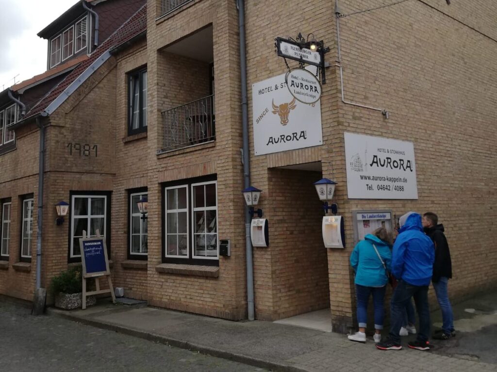 Nach einem leckeren Fischbrötchen machten wir auf dem Rückweg in Kappeln Station. Dort blieb die Brücke wegen des immer stärker werdenden Windes geschlossen. Es waren bis auf den Raddamfer keine Schiffe unterwegs. Aber viele Touristen. Wir schlossen uns ihnen an.