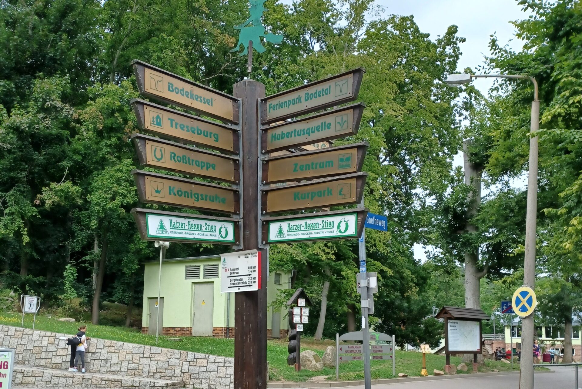 Dort angekommen, schulterten wir die Rucksäcke und gingen zum Ausgangspunkt unserer Wanderung, dem Harzer-Hexen-Stieg. Vor uns lagen etwa 14,5 km durch das Bodetal bis nach Altenbrak, die in ungefähr 4 Stunden zu schaffen sein sollten.