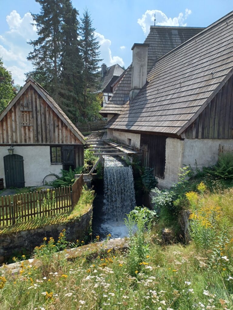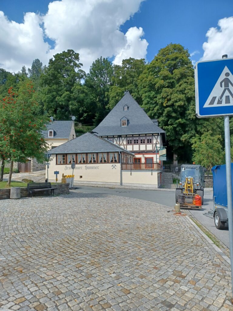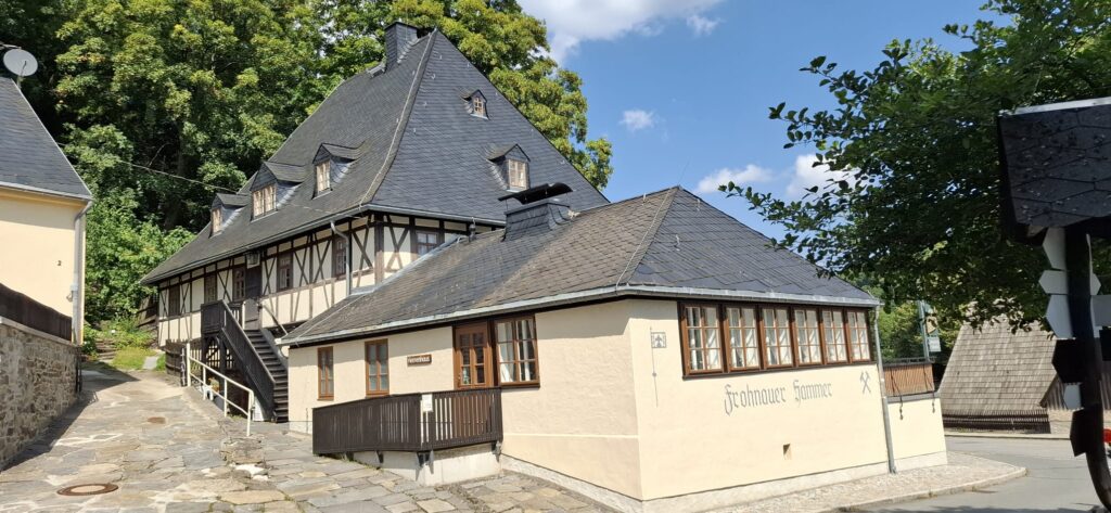 Weiter ging es zum Frohnauer Hammer, einem technischen Denkmal. Der Frohnauer Hammer ist aus einer im Mittelalter errichteten Getreidemühle hervorgegangen. 1621 erfolgte dann der Umbau zu einem Hammerwerk. Leider kann man dieses Museum nur mittels einer Führung besuchen. Wir hätten bei 30°C gut 1 1/2 Stunden warten müssen. Das taten wir uns dann nicht an.