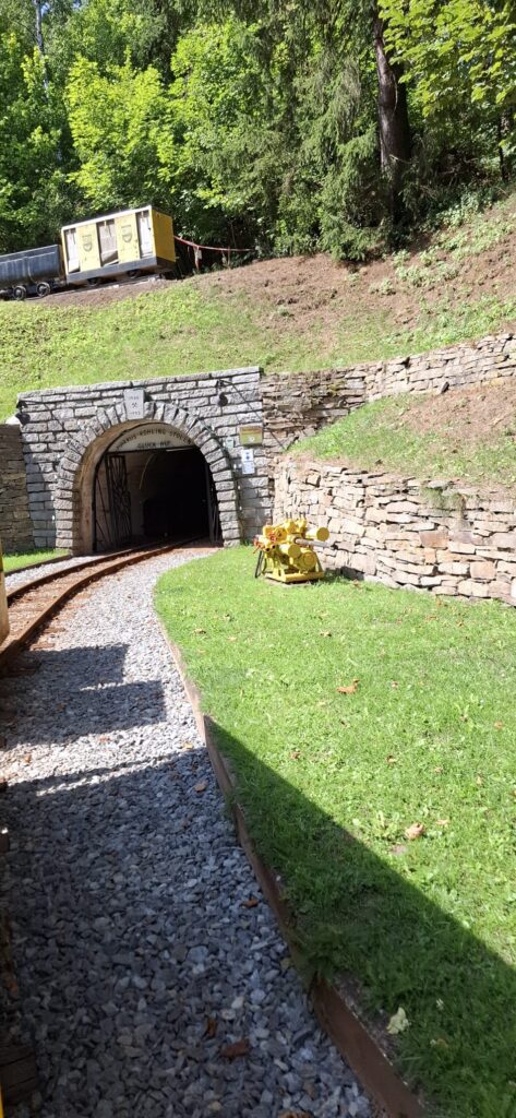 Der Markus-Röhling-Stolln (ohne e) war unser Ziel. Bereits wenige Jahre nach dem ersten Silberfund am Schreckenberg 1491 dehnte sich der Bergbau auf das spätere Grubenfeld der Grube Markus Röhling aus. Bis zur Einstellung des Grubenbetriebs 1857 wurden hier Silber und Kobalterz abgebaut. Von 1948 bis 1953, der endgültigen Stilllegung, wurde von der SAG Wismut Uranerz abgebaut.