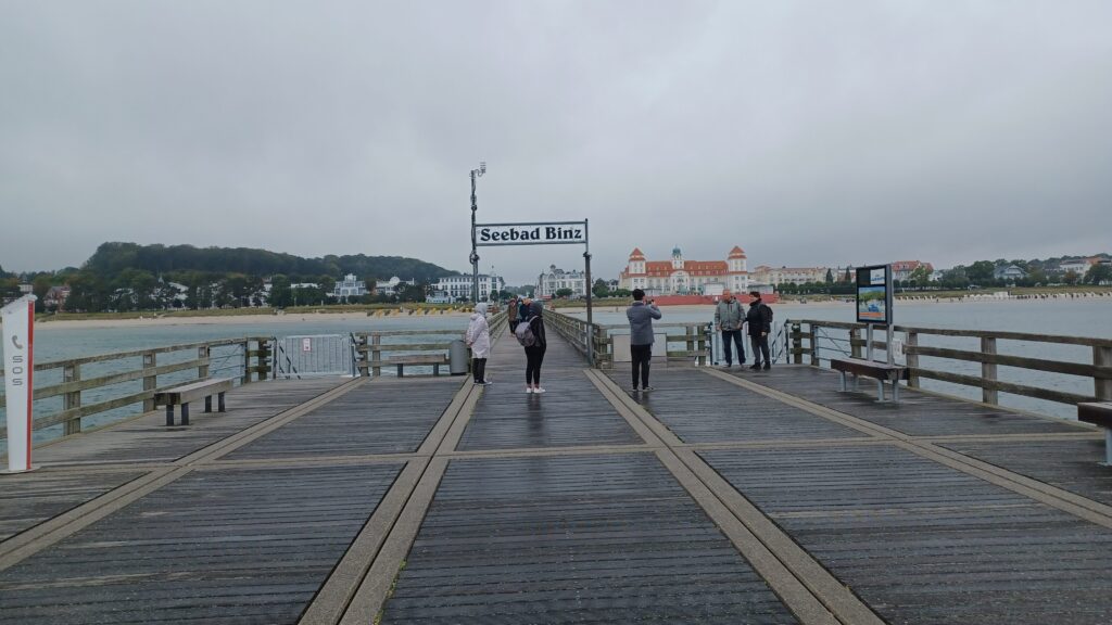 Also fuhren wir mit dem Auto nach Binz, um dort einen kleinen Eindruck von der dortigen Bäderarchitektur zu bekommen. Wir schlenderten durch die Einkaufsmeile bis hin zum Ende der Seebrücke. Von da aus genossen wir den Blick auf das bekannte Dünenhaus und das Kurhaus Binz. Beim Prominieren auf der Strandpromenade entdeckten wir tatsächlich noch Hotels, die es schon in einem anderen geschichtlichen Zeitalter gab. Auch Künstler hinterließen hier ihre Werke.