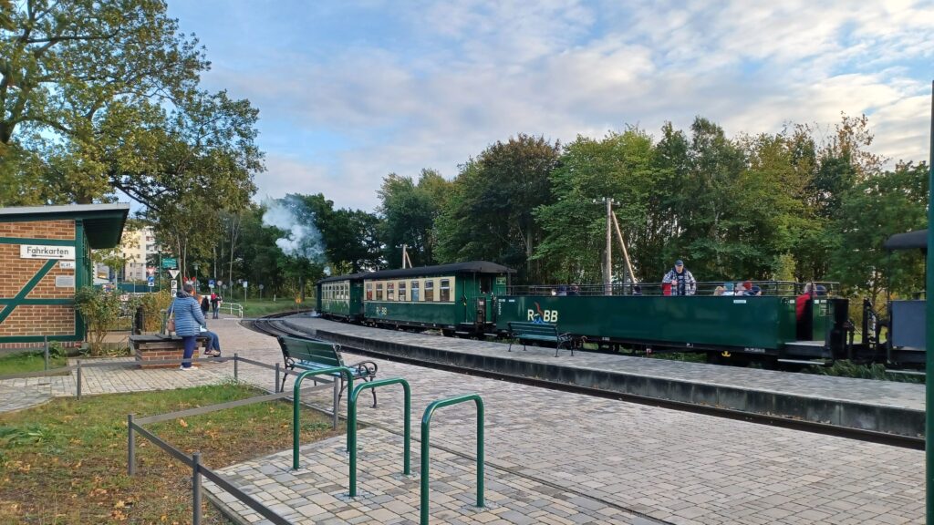 Nach dem Käffchen machten wir noch einmal eine Runde zur Seebrücke. Danach unternahmen wir eine OKF mit der Bäderbahn durch den Ort zum Cliff-Hotel und zurück.
