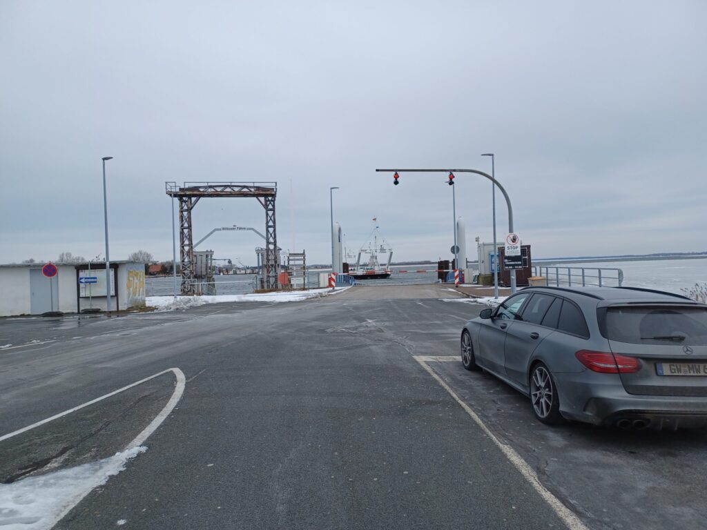 Weiter ging es zur Wittower Fähre, mit der wir übersetzen konnten. Auf den Eisflächen daneben waren die verendeten Schwäne kein schöner Anblick.