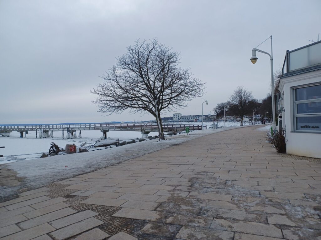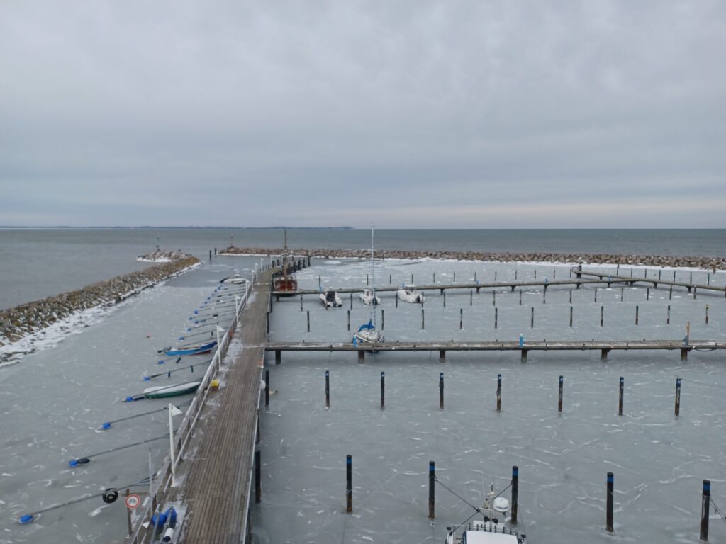 Wieck, wo wir 2016 in den Herbstferien ein schönes Häuschen gemietet hatten, war der nächste Anlaufpunkt. Viel zu sehen gab es dort nicht. Alles geschlossen, auch die Eisdecke.