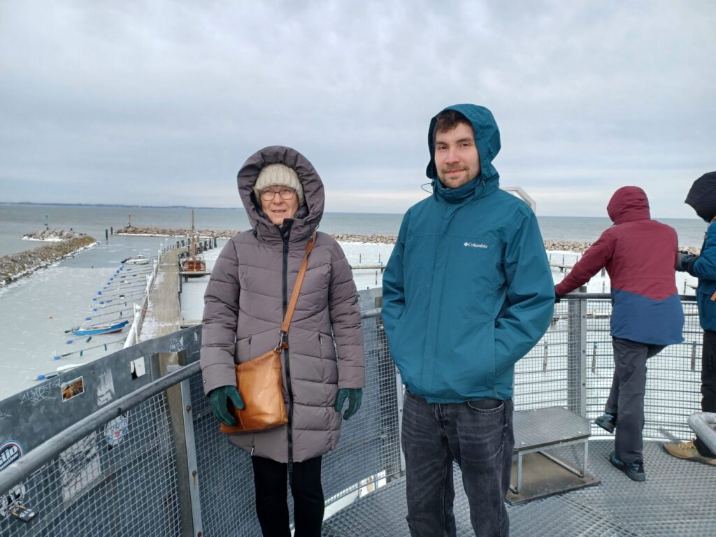 In Glowe, wo wir ebenfalls schon schöne verlängerte Wochenenden verbracht hatten, stiegen wir für einen Spaziergang aus. Sibirische Kälte empfing uns hier. Diesmal aber hielten wir durch. Dick eingemummelt blickten wir hinüber zum Kap Arkona.
