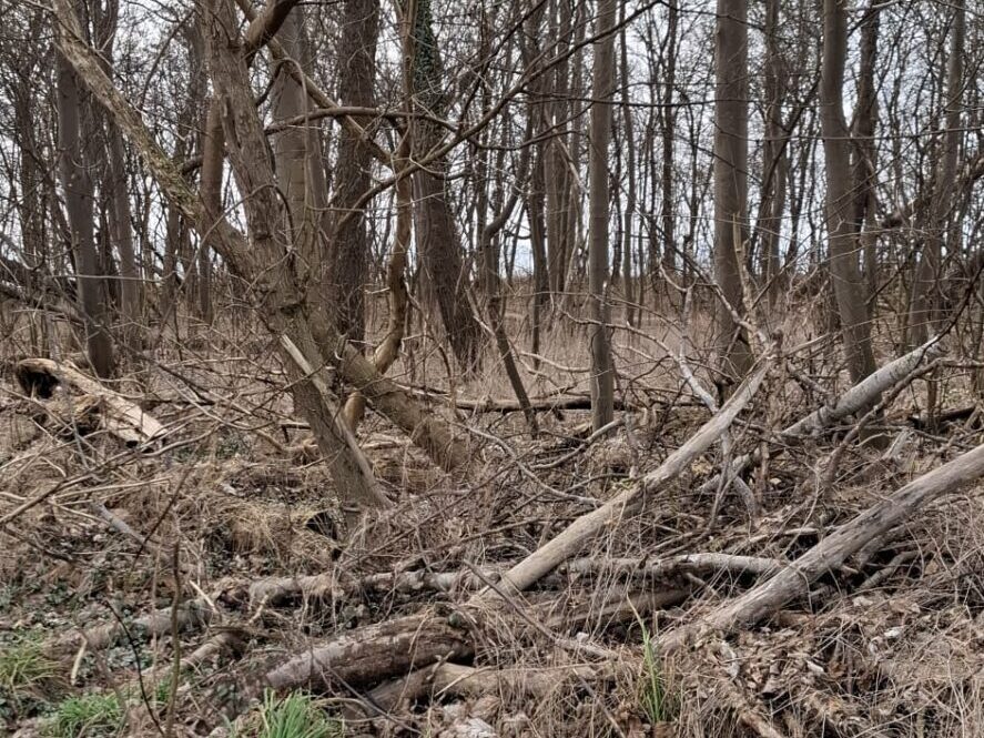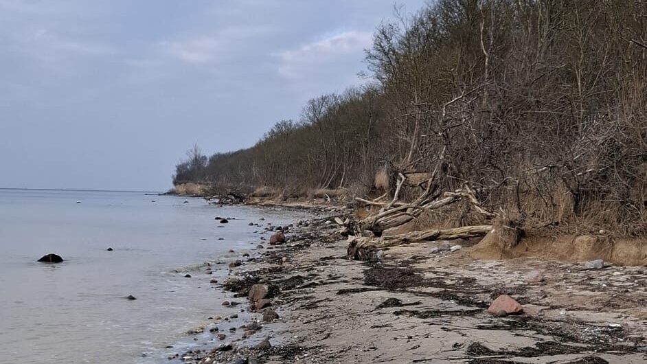 Also mussten wir mit dem Feldweg entlang des Küstenwäldchens vorlieb nehmen. Ab und zu konnten wir mal einen leichten Blick auf das Wasser riskieren.