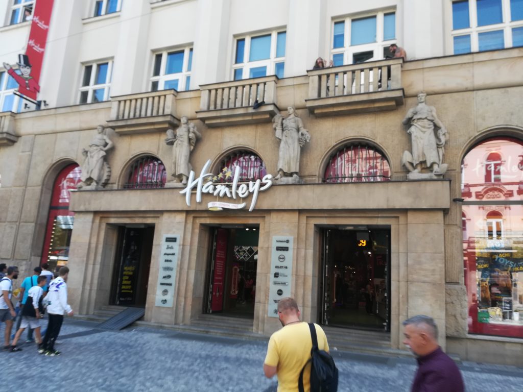 Nachdem uns ja das Hotel am Vorabend positiv überrascht hat, konnten wir am nächsten Morgen ein umfangreiches Frühstück plündern. Anschließend packten wir das Auto, stiegen dann aber in Bus und Straßenbahn und fuhren in die Innenstadt Prags. Dort schlenderten wir über die Karlsbrücke, vorbei an der Rathausuhr zum Wenzelsplatz. Unterwegs entdeckten wir, den eigentlich in London stehenden Spielzeugladen, mit Ableger in Prag, mit dem Namen Hamleys. Hier konnte man gar nicht mehr aufhören zu grinsen…