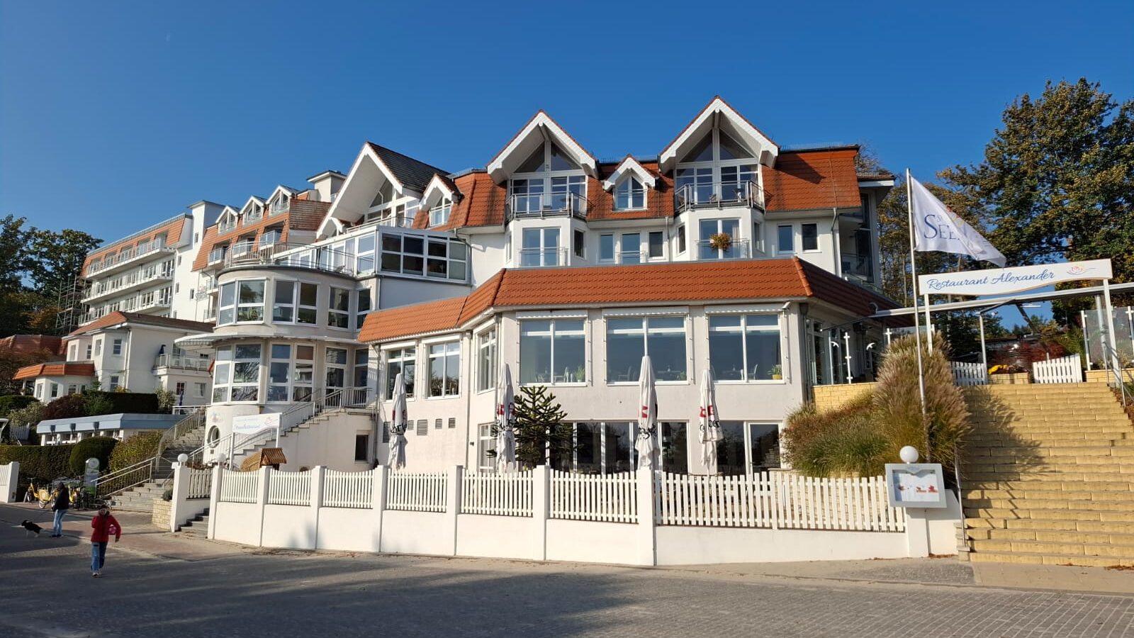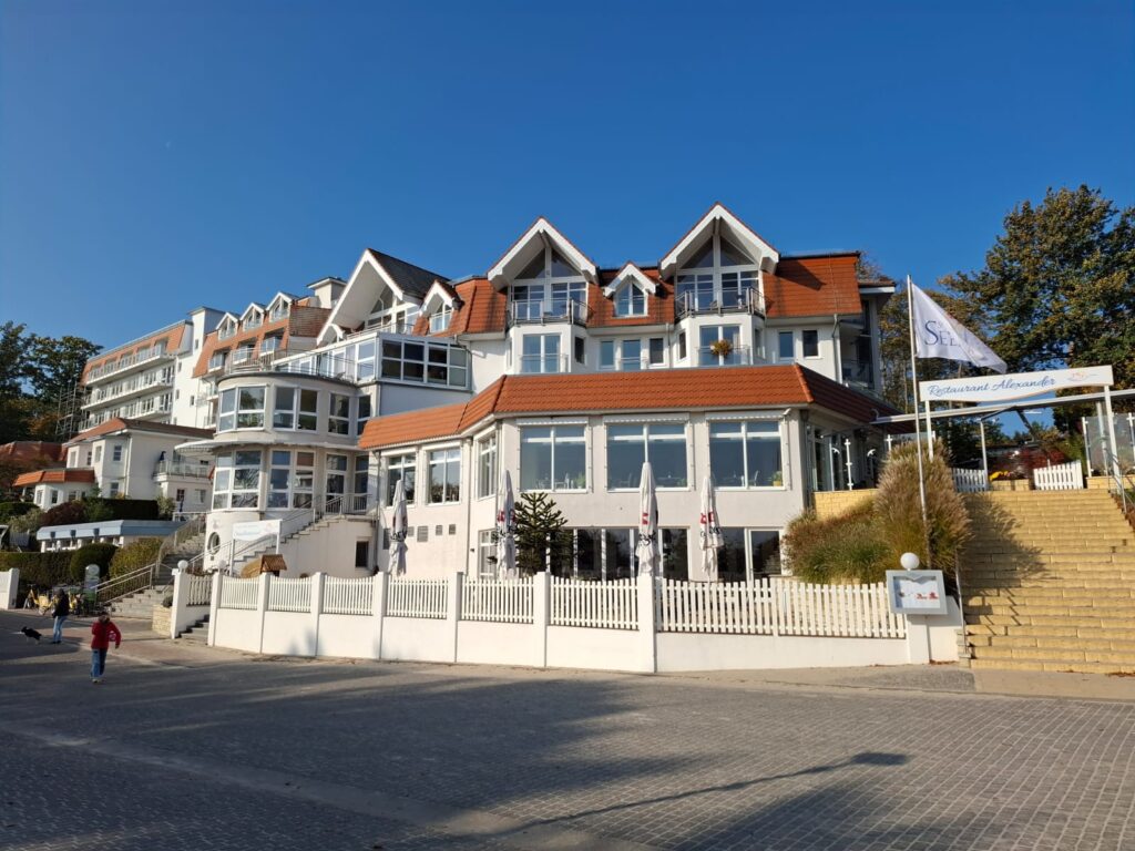 Nach einem reichhaltigen Frühstück fuhren wir nach Stubbenfelde, wo das Auto geparkt wurde. Weiter liefen wir über die 700 m lange Dünenpromenade nach Kölpinsee und erreichten zunächst das Strandhotel „Seerose“. Vor vielen Jahren haben wir hier einmal ein Wochenende verbracht.