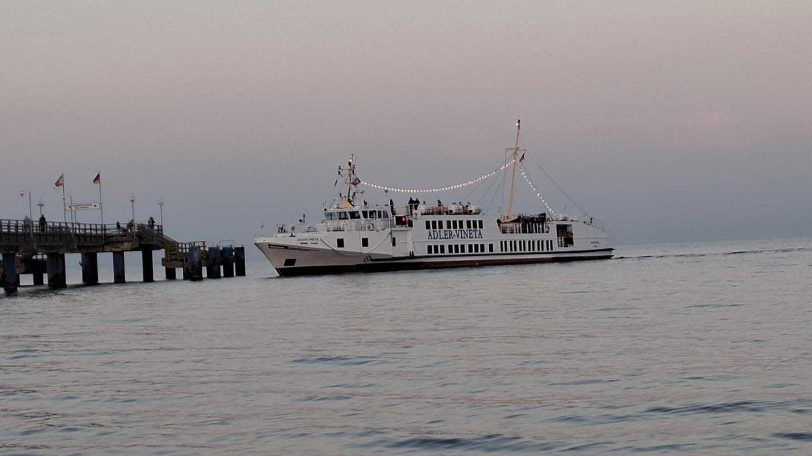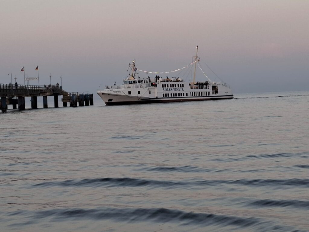 Zurück in Bansin, suchten wir noch einmal Strand und Seebrücke auf. Dort legte doch glatt auch ein Schiff an.