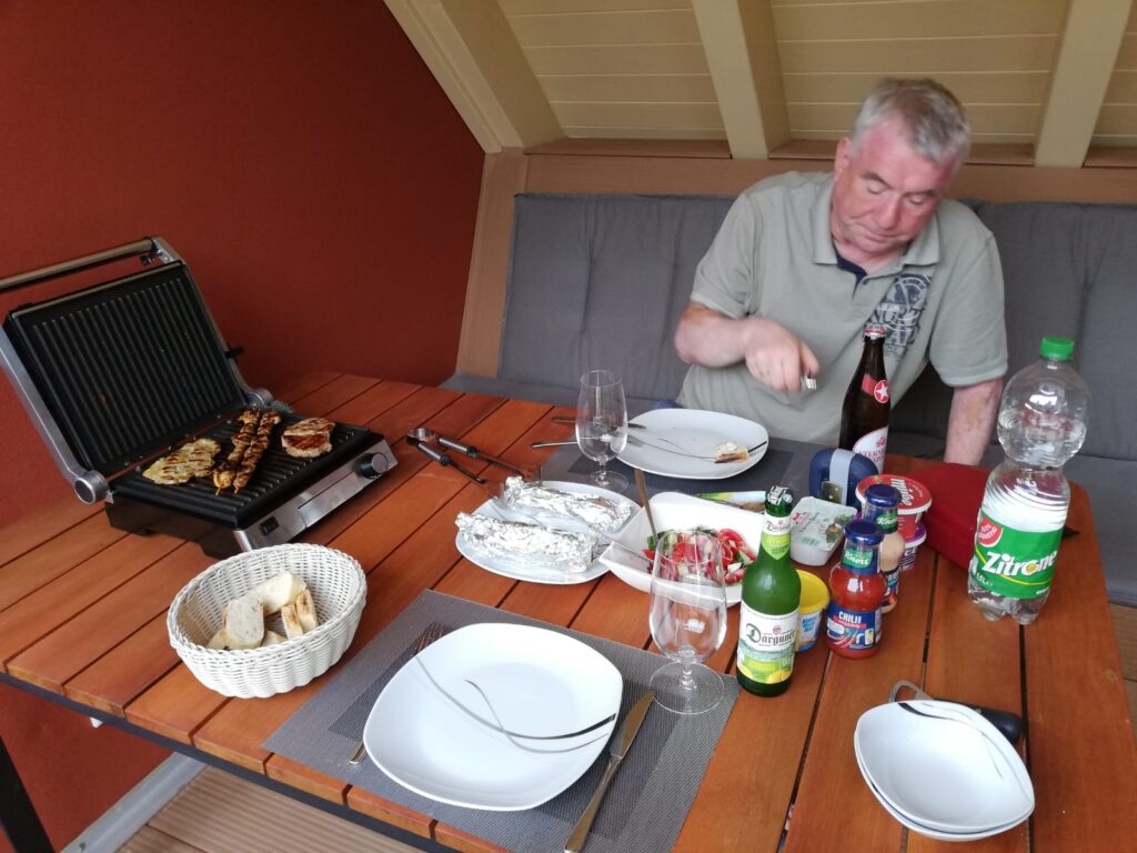 Zum Abschluss des erlebnisreichen wie anstrengenden Tages leisteten wir uns ein Grillmenü. Entsprechende Kräuter helfen jetzt bei der Verdauung und nehmen das Völlegefühl, wie uns heute erklärt wurde.