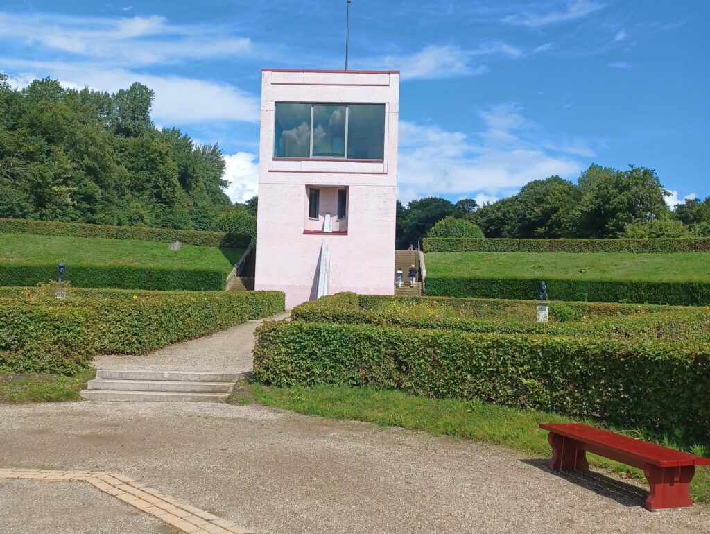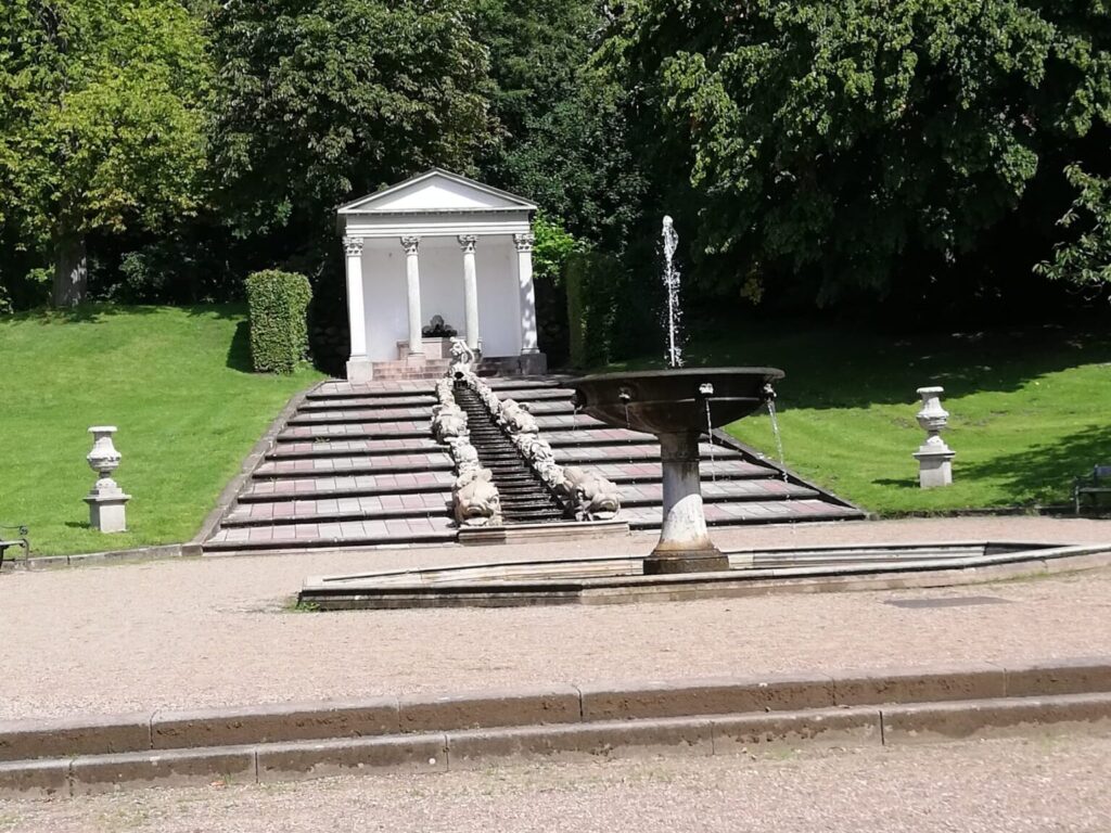 Etwas schmucklos wirkt auch der barocke Terrassengarten mit einer Herkulesfigur im Spiegelteich und dem neuen Globushaus. Vertrocknete oder ungepflegte Staudenbeete, statt blühender Blumen!