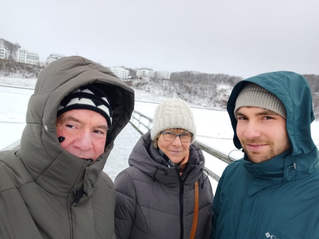Hier erwartete uns ein eisiger Wind, der uns jedoch nicht davon abhielt, in Richtung Seebrücke zu gehen. Was für ein Anblick! Alles vereist, kein Wasser zu sehen.