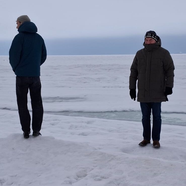 Hier am Strand konnte man das aufgetürmte Eis noch erkennen. Auf der zugefrorenen Ostsee zu laufen, mussten die Herren dann doch ausprobieren. Weit trauten sie sich aber doch nicht.