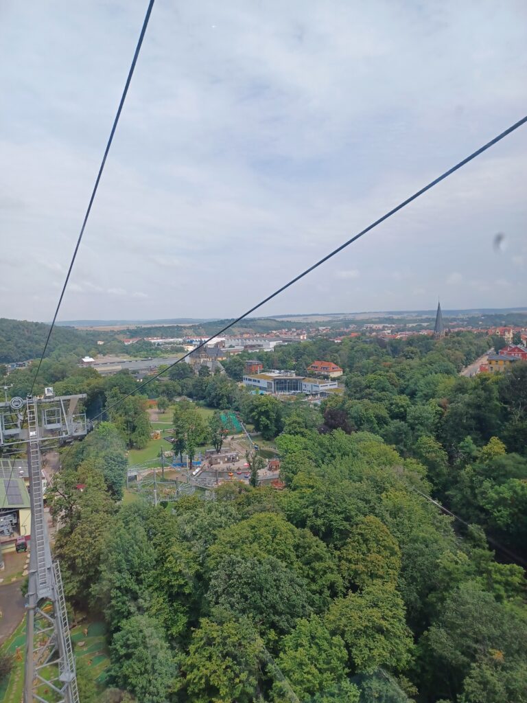 Alternativ erreicht man den Hexentanzplatz auch mit der Seilbahn. Einige Gondeln haben einen Glasboden, um während der Fahrt ins romantische Bodetal blicken zu können. Das gefällt aber nicht jedem.