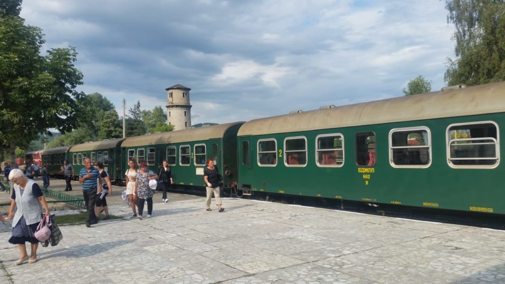 Wie im Flug sind wir gegen Mittag in Velingrad eingetroffen. Nach dem Einchecken fuhren wir zum Bahnhof, stellten unser Auto ab und stiegen in die Rhodopenbahn.
