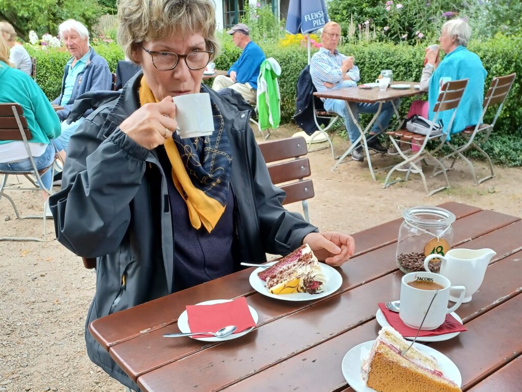 Bei einem überaus großen Angebot an Torten fiel unsere Wahl heute auf Erdbeertorte und Eierlikörtorte. Naja, es wird hoffentlich kein tägliches Ritual. Ich erinnere an den Moselurlaub.