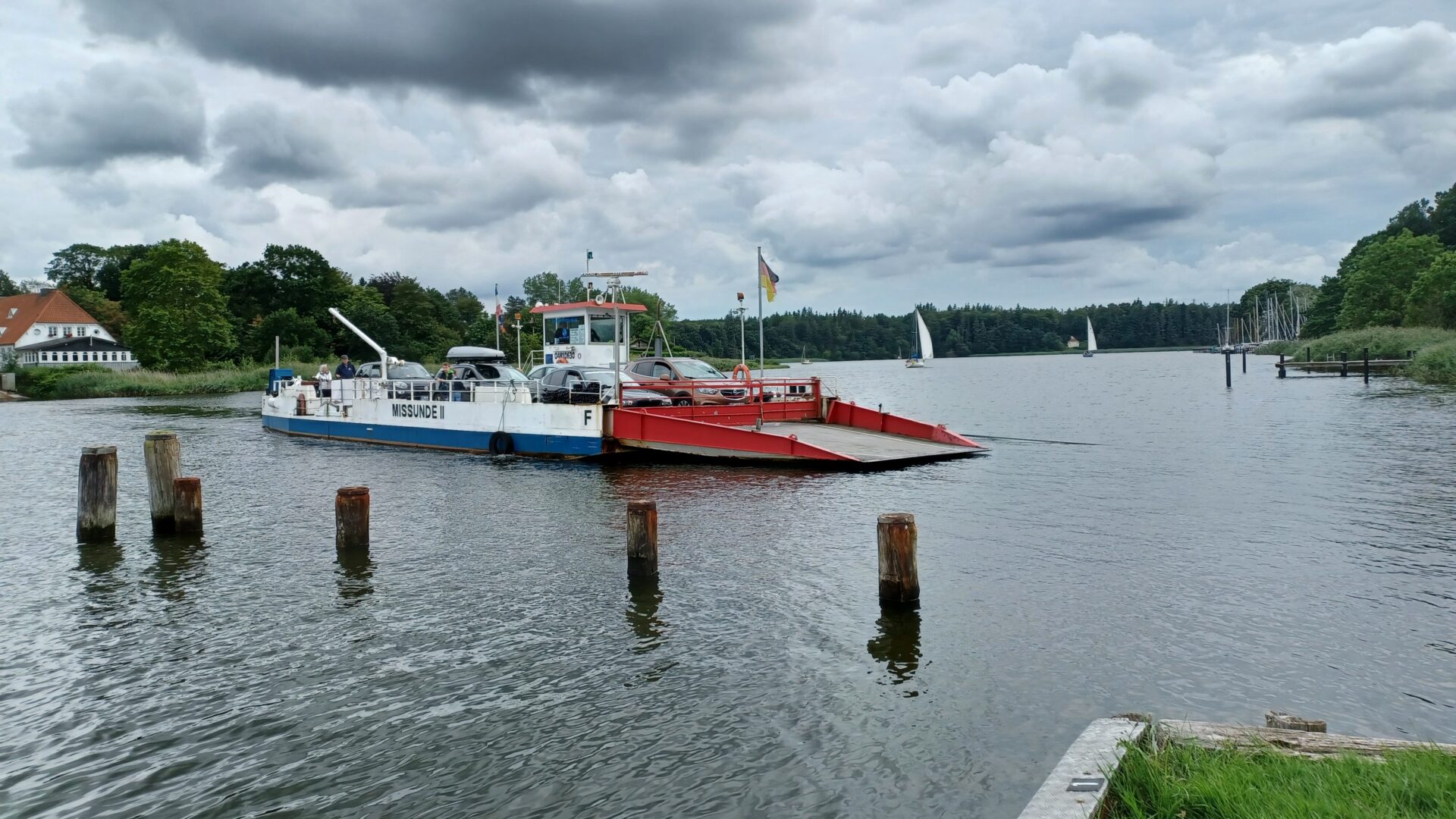 Letzte Station war dann Missunde, wo eine Fährüberquerung möglich ist. Und die Fähre fuhr auch. Leider nicht letzten Donnerstag, das hätte uns einen riesigen Umweg erspart.