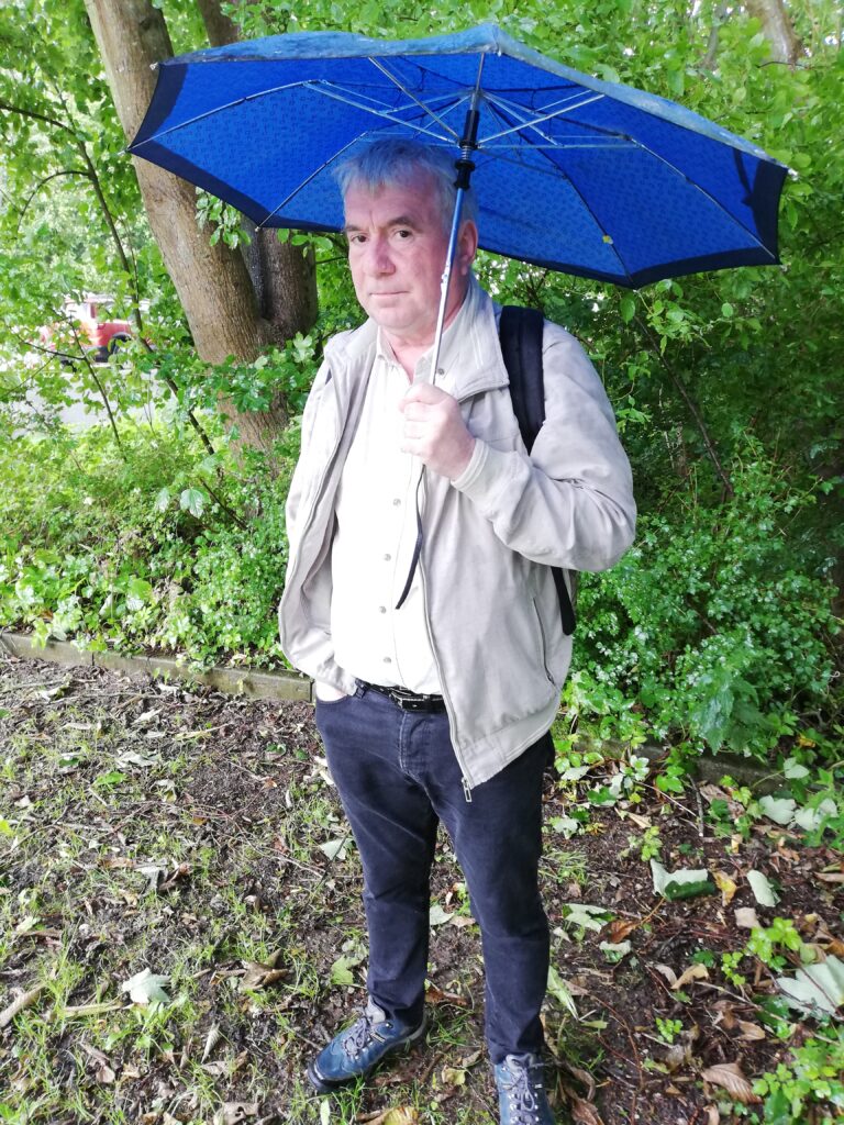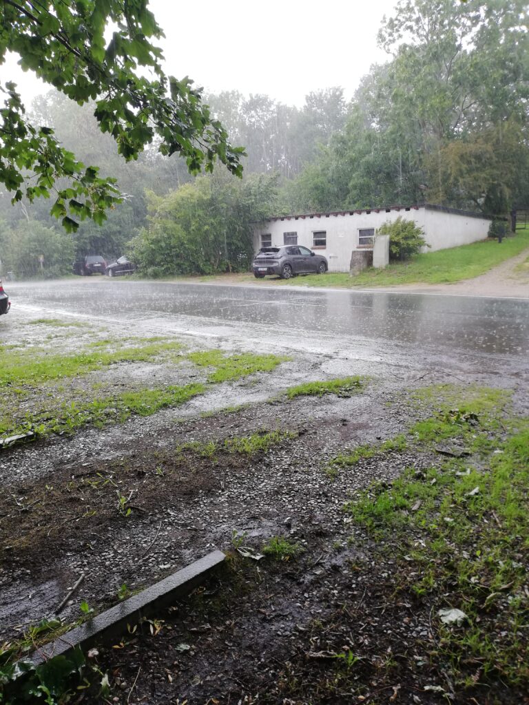 Weiter ging es zur Fähre, wo noch die Sonne lachte. Am anderen Ufer gingen wenige Augenblicke später alle „Schleusentore“ auf und „wir warteten im Park“…… auf besseres Wetter.
