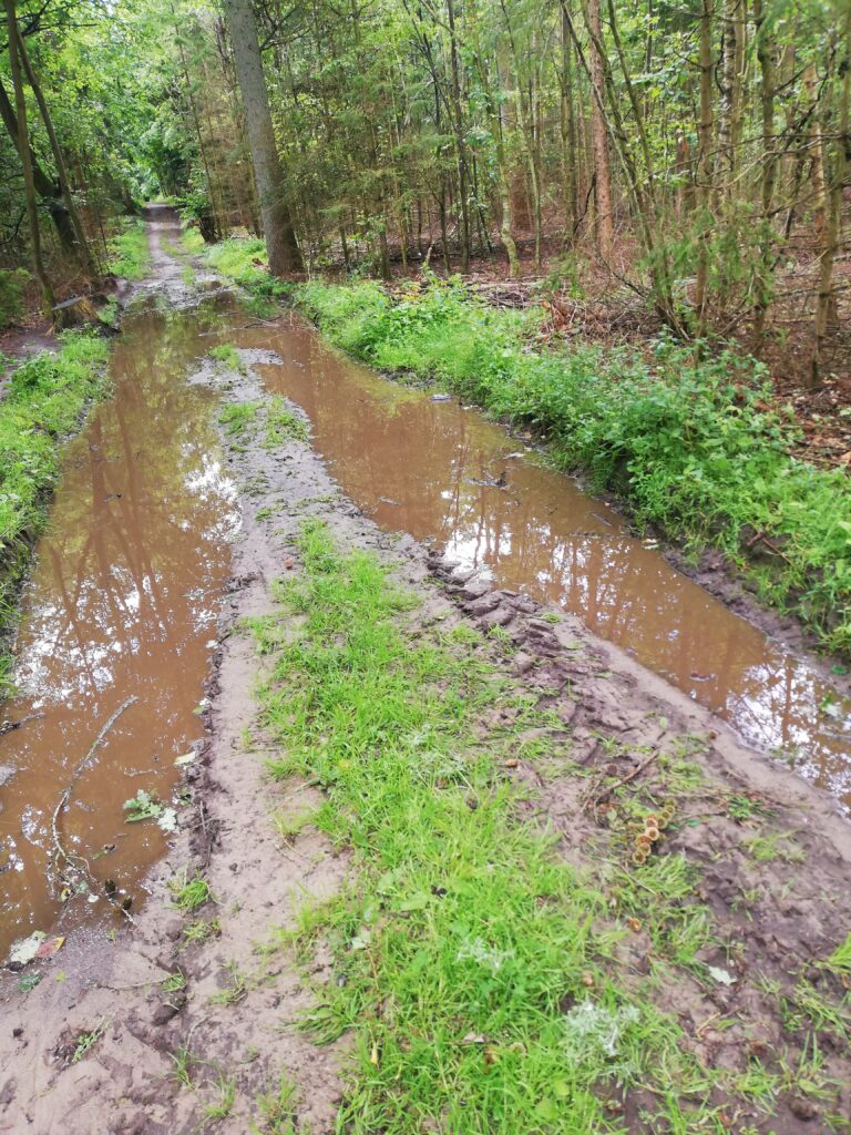 Durch einen Küstenwald ging es zunächst direkt an der Schlei entlang. Dann jedoch führte uns der Weg weiter ins Hinterland, wo wir zwar anfangs auch mal das eine oder andere Hindernis bewältigen mussten, aber idyllische Wege fast wie im Hainich vorfanden. Pilze gab es übrigens in Hülle und Fülle.