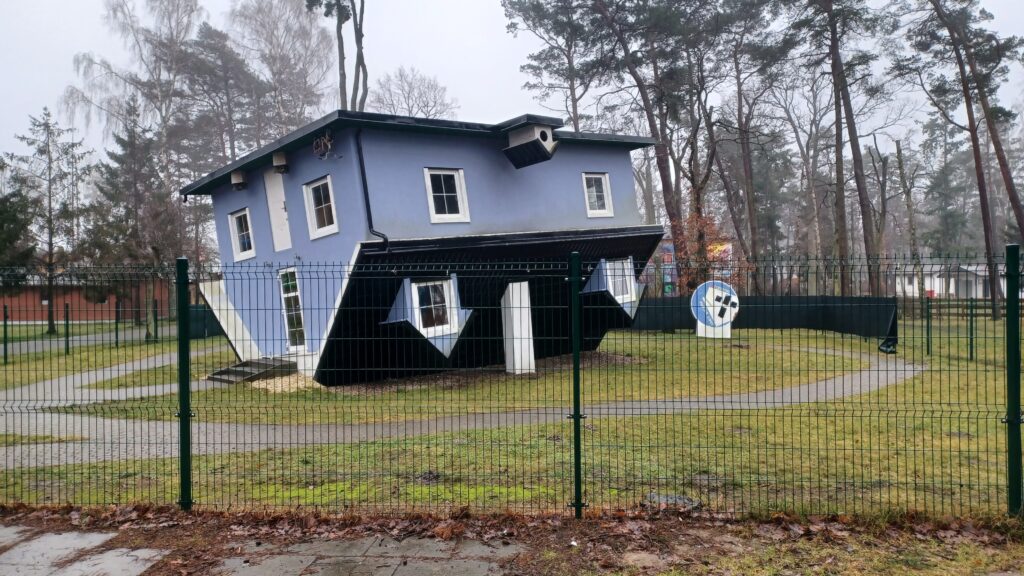 Im Ort selbst fällt noch das auf dem Kopf stehende Haus auf. So etwas ähnliches gibt es auch auf Usedom.