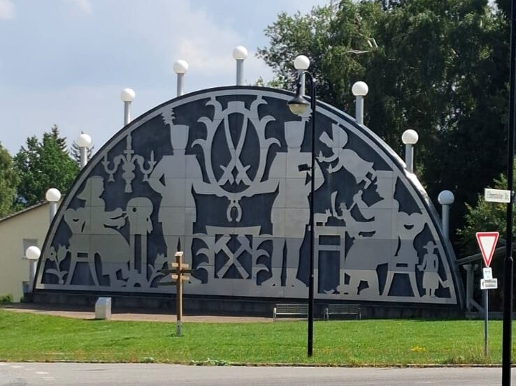 Zunächst fuhren wir in die Bergstadt Johanngeorgenstadt. Man kann schließlich nicht früh genug an Weihnachten denken, sagten wir uns beim Anblick des größten freistehenden Schwibbogens und der weltweit größten Pyramide in unmittelbarer Nähe. Beide sind Wahrzeichen der erzgebirgischen Traditionen und Bräuche. So ziemlich jeder Ort im Erzgebirge hat seinen eigenen Schwibbogen und mindestens eine Pyramide.