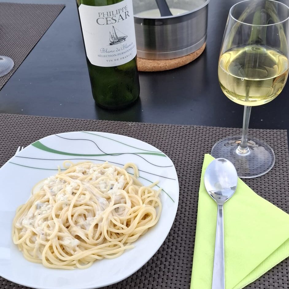 Abendessen hieß heute: Spagetti mit Gorgonzolasoße und mal wieder Tarator, von dem man bei diesem Wetter nicht genug bekommen kann.