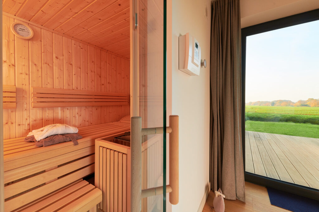 Wegen dichten Nebels entschieden wir uns, nach dem Kaffee keinen Spaziergang ans Wasser zu machen, sondern die Sauna auszutesten. Nach nur 20 Minuten war sie schon auf 90 Grad aufgeheizt!